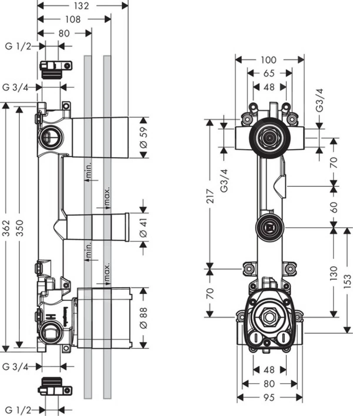 - aansluitmaat leidingen: DN20