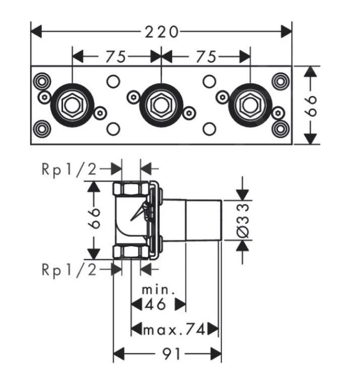 Montagegarnituur voor thermostaat op wand/voor inbouw, voor 2 functies