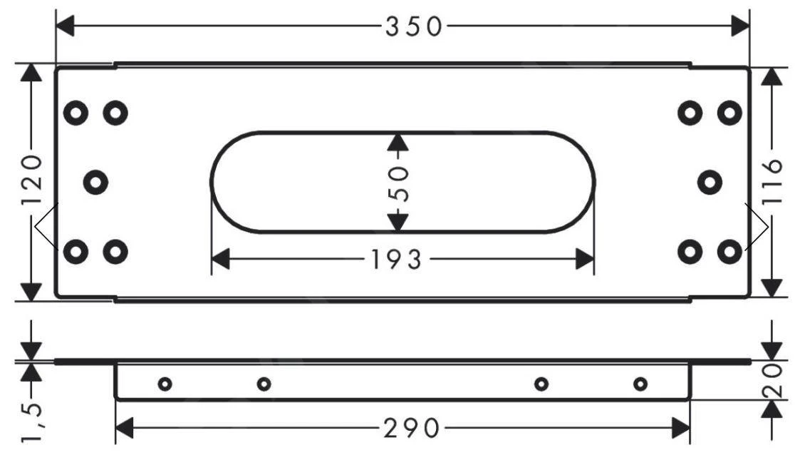 - afmeting 350 × 120 mm