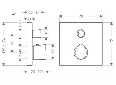Afdekset voor thermostaatkraan met stopkraan zonder garnituur