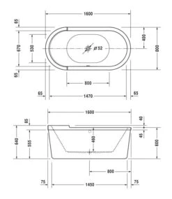 Duravit Xviu – Vrijstaand Bad, 1600×800 Mm, Met Metalen Onderstel, Wit/mat Zwart 700444000B20000