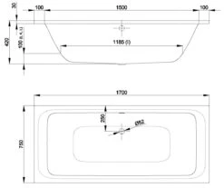 Bette Select – Duo Inbouwbad, 1700×750 Mm, 1 Gat Voor Handgreep, Anti-Slip, Wit 3472-0001GR,AR