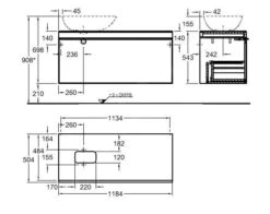 Geberit Citterio – Wastafelonderkast 560 Mm Voor Waskom, Glanzend Zwart/eik Grijsbruin 500.560.JJ.1