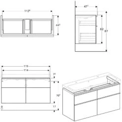 Geberit ICon – Onderkast Voor Dubbele Wastafel Met 4 Laden 1200 Mm, Mat Wit 841420000
