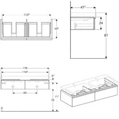 Geberit ICon – Onderkast Voor Dubbele Wastafel Met 2 Laden 1200 Mm, Lava Look 841121000