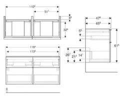 Geberit ICon – Wastafelkast Met Dubbele Wastafel, 118x48x63 Cm, 2 Laden, Lava 502.338.JK.1