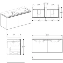 Geberit Acanto – Wastafelkast, 1190x476x535 Mm, 2 Laden, Stankafsluiter, Lava 502.355.JK.2