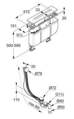 Kludi Rotexa – Badafvoer En Overloop Garnituur, Met Bowdenkanbel 850 Mm, Chroom 2140905-00