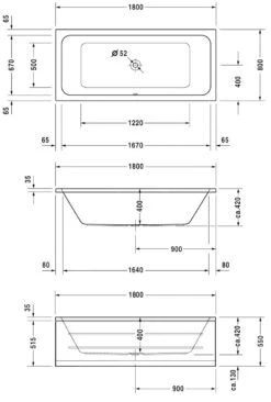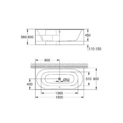 Badpoten en afvoer- en overloopgarnituur met een lengte van 560 mm niet meegeleverd, moeten apart worden besteld.