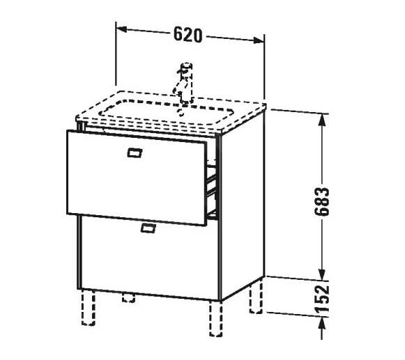 - 2 laden, bovenste lade met uitsnijding voor sifon en sifonkap