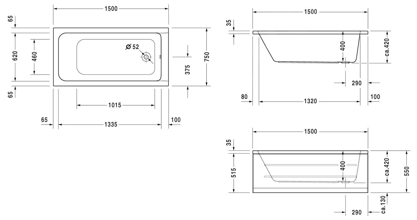 Duravit D-Code – Bad 1500×750 Mm, Wit 700095000000000