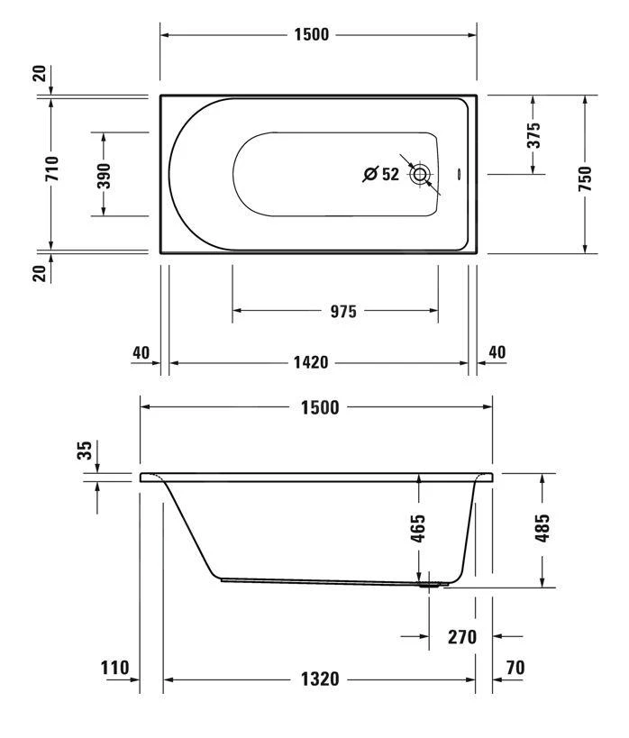 Afvoerset en badsteun niet inbegrepen, moeten afzonderlijk worden aangeschaft.