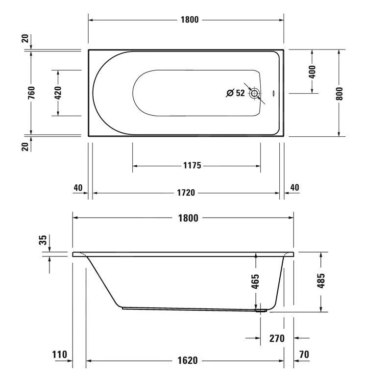 Afvoerset en badsteun niet inbegrepen, moeten afzonderlijk worden aangeschaft.