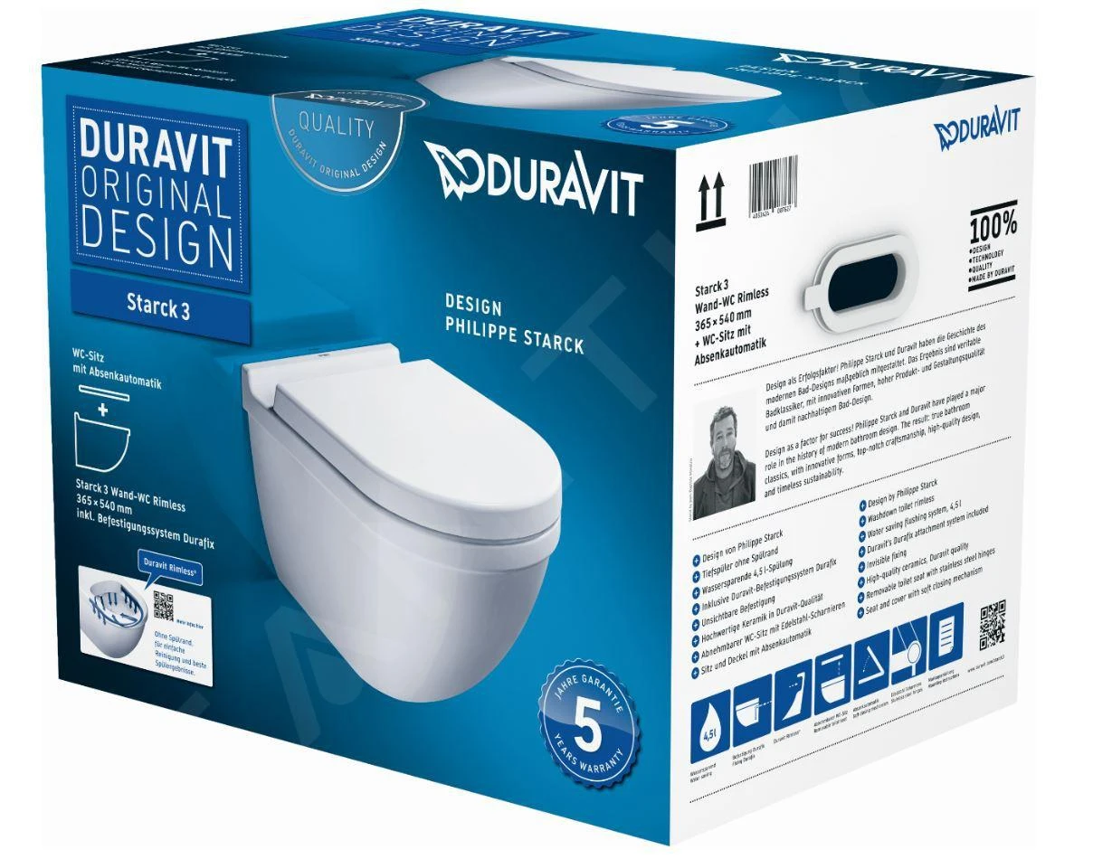 Hygiënisch, efficiënt, eenvoudig te reinigen: maak kennis met dit Starck 3 hangtoilet van Duravit. Het is gemaakt van hoogwaardig keramiek met onderhoudsvriendelijk oppervlak en uitgerust van een compatibele wcbril voor ultiem gebruiksgemak.Â
