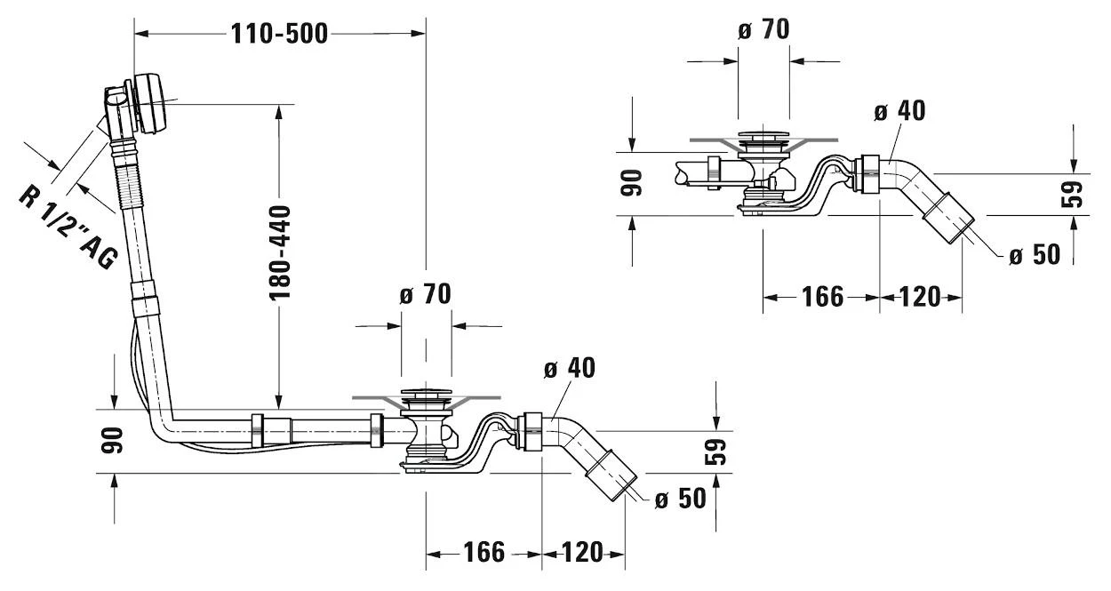 - voor baden met afvoer in het midden