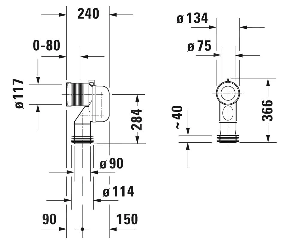 - afvoer: Ø 90 mm