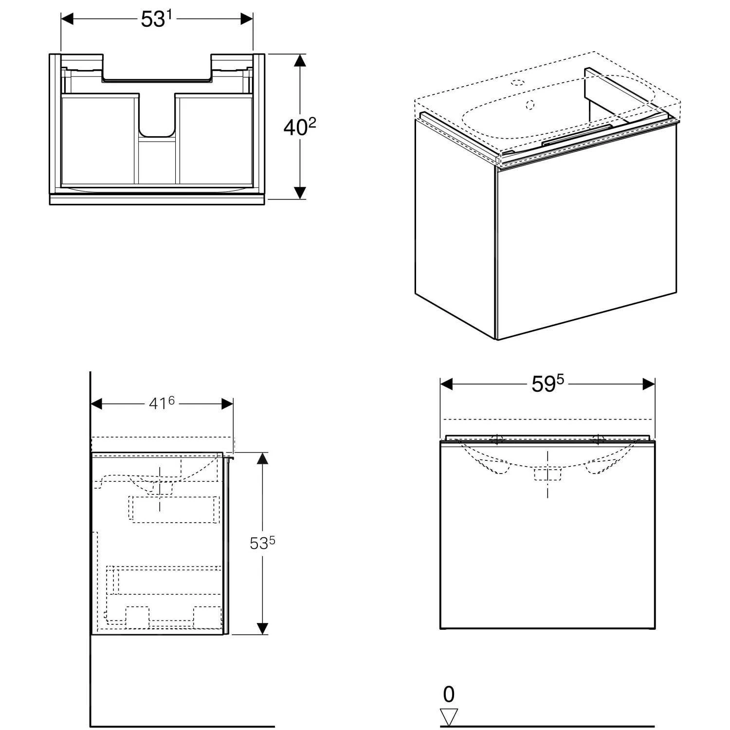 - voor 60 cm brede wastafels
