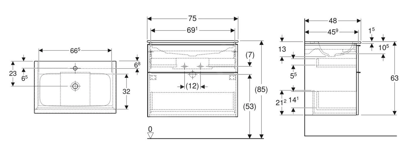 - afmetingen wastafelonderkast 750 x 480 x 630 mm