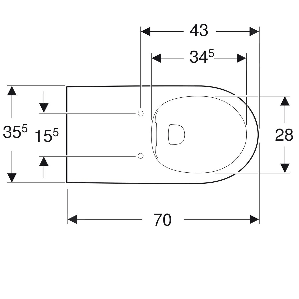 - keramische afschuining voorkomt dat de closetzitting opzij glijdt