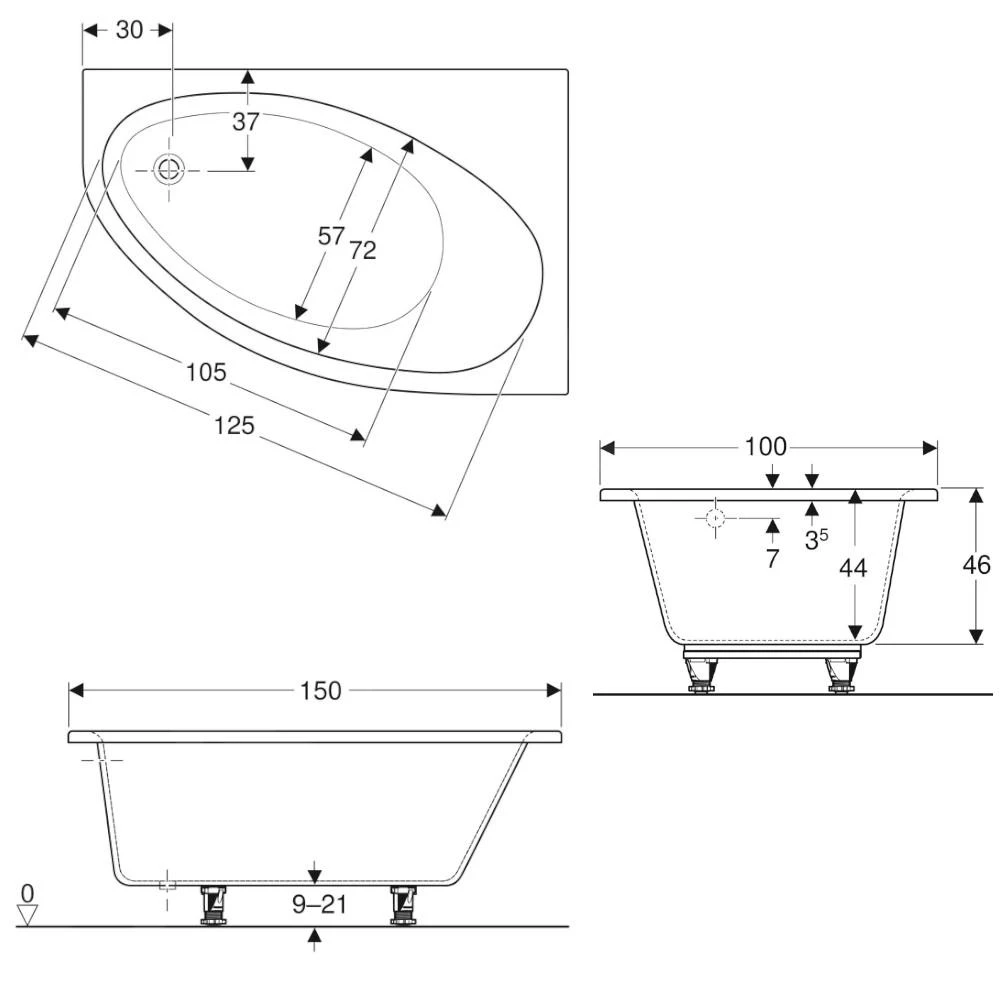 Afvoerset niet inbegrepen, moet apart worden aangeschaft. Een frontpaneel voor het bad kan worden bijgekocht.