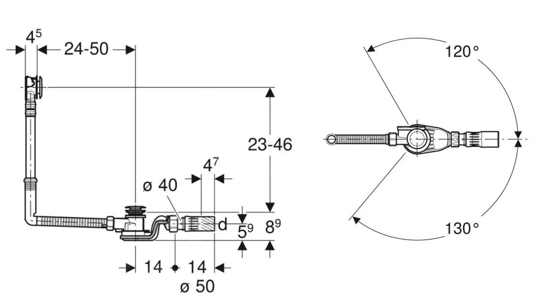 Afvoergarnituur voor baden d52, lengte 50 cm