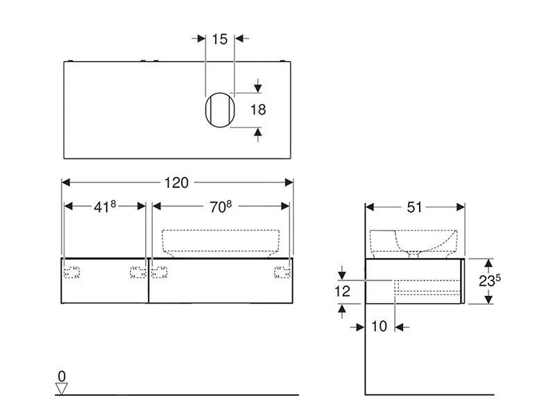 - ruimtebesparende sifon met dompelbuis (diameter 32 mm) meegeleverd