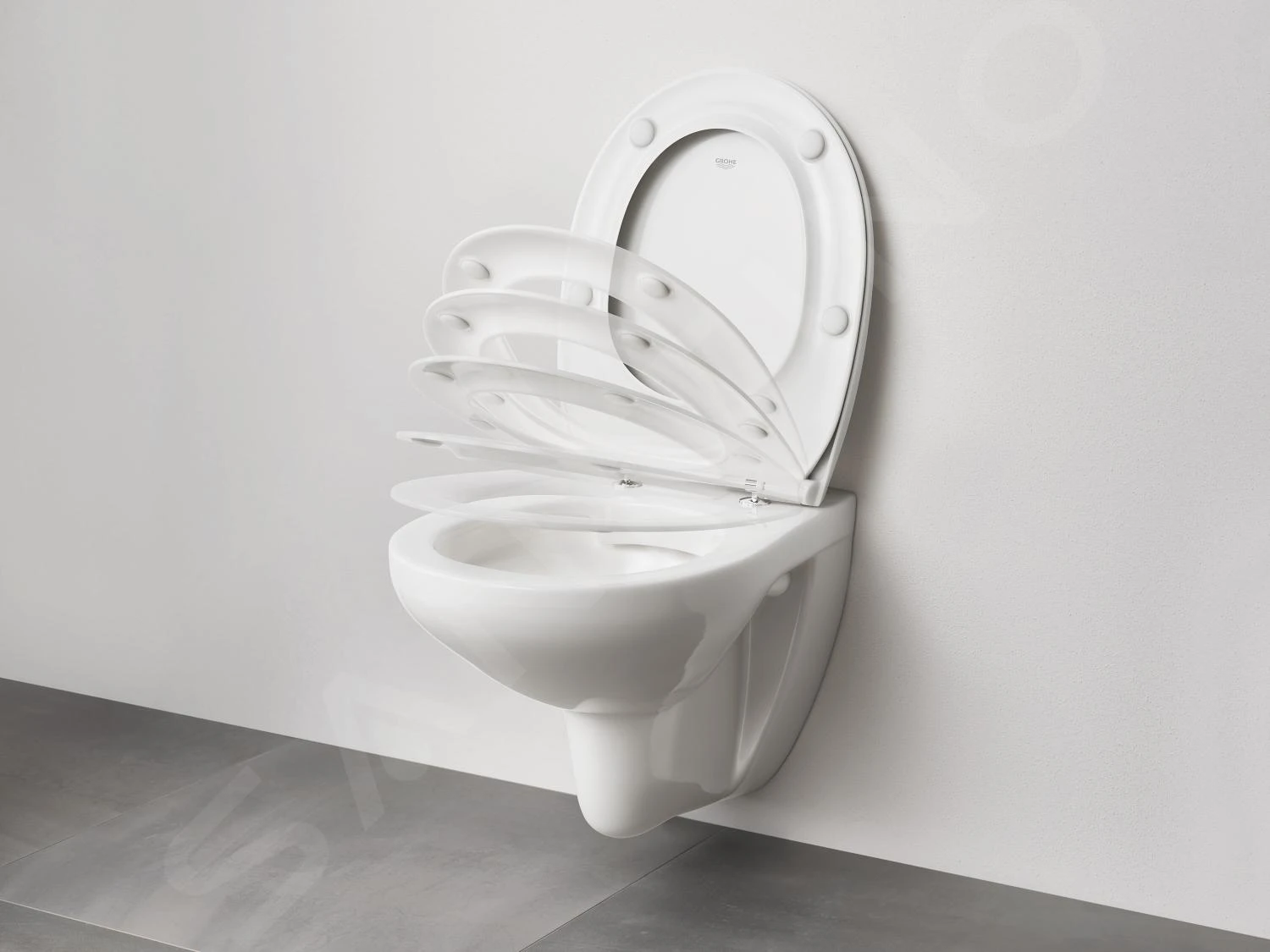 Ontdek dit hangtoilet van GROHE met nauwkeurig en simpel design uit de Bau Ceramic collectie. Dankzij de simpele, ronde lijnen zal het naadloos passen bij elke ruimte. Dit hangend toilet is ontworpen zonder spoelrand en is gemaakt van hoogwaardig geglazuurd keramiek. Het oppervlak van het toilet is daardoor perfect glad en goed bestand tegen extreme belastingen. Het GROHE Bau Ceramic toilet heeft een spoelcapaciteit van 3 liter en 5 liter. Het toilet is bovenop voorzien van een compatibele, ultradunne en gemakkelijk verwijderbare toiletzitting met de SoftClose-functie.