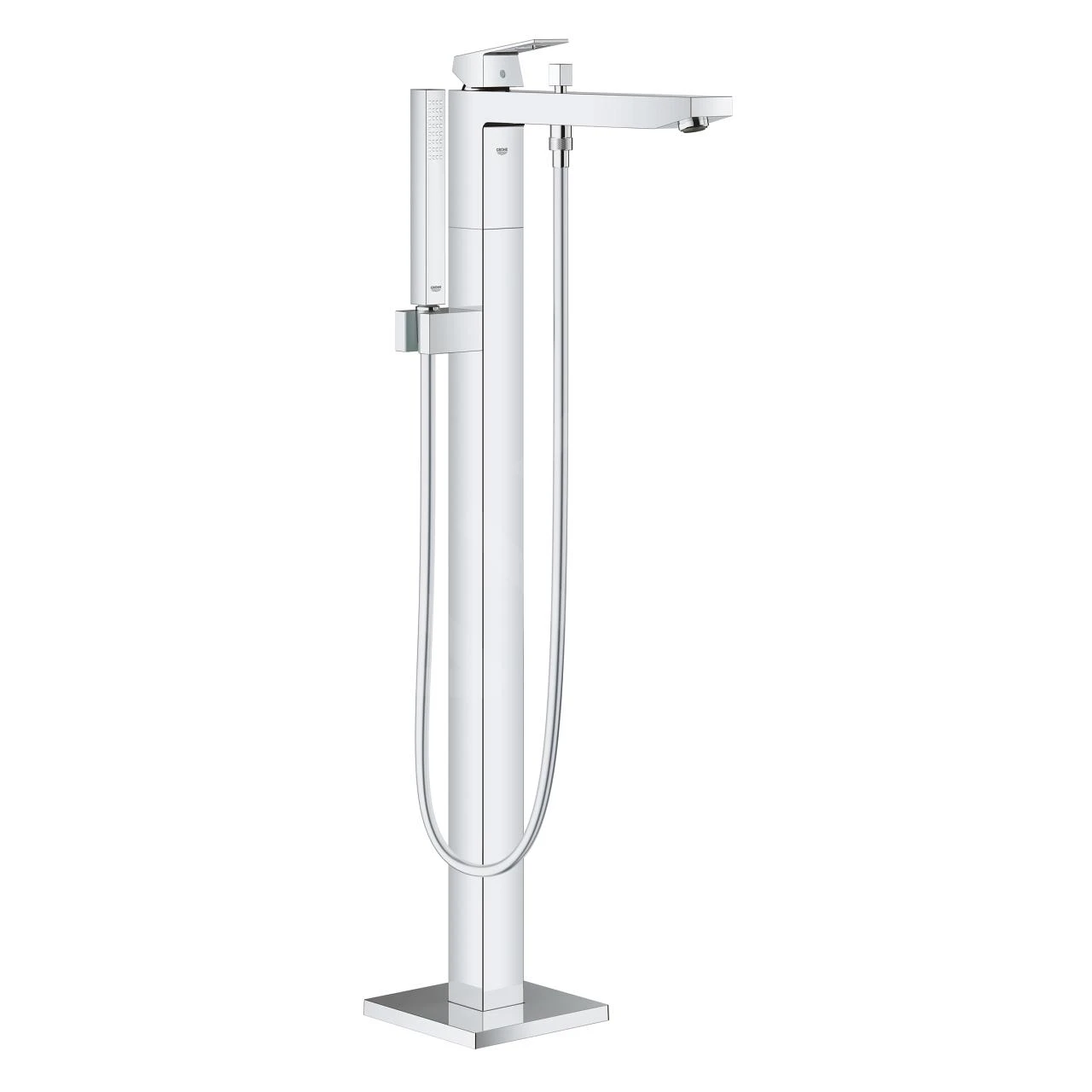 Ontdek deze GROHE Eurocube vrijstaande badkraan met hedendaagse vierkante lijnen: speciaal ontworpen om bij een vrijstaande badkuip naadloos te passen. Alle oppervlakken worden effectief beschermd door de GROHE StarLight afwerking voor ultieme glans en makkelijk onderhoud. De badmengkraan is bovenop voorzien van bijpassende accessoires zoals een staaf handdouche, een metalen doucheslang van 1.250 mm en een geïntegreerde houder. De handdouche biedt de Normal Spray, terwijl de GROHE DreamSpray ervoor zorgt, dat het water gelijk vanuit elk sproeigaatje stroomt.