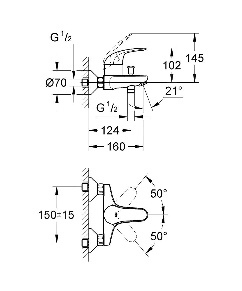- keramische cartridge 46 mm met GROHE SilkMove technologie
