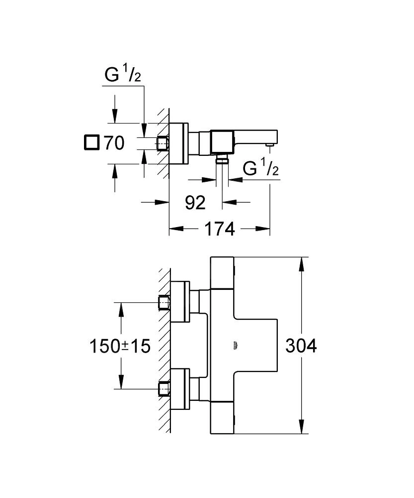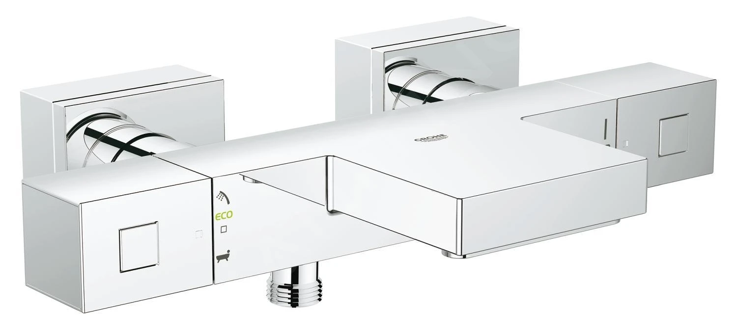 - GROHE AquaDimmer Eco met gecombineerde functie: geïntegreerde GROHE EcoButton (knop voor waterbesparend douchen)