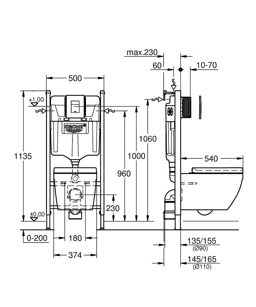 - spoelreservoir van 6 – 9 l (in de fabriek ingesteld op 6 l – 3 l)