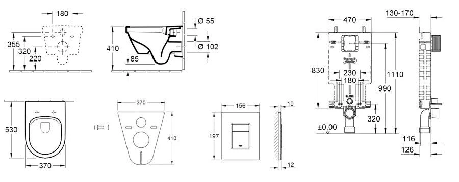 WC set met inbouwreservoir, toiletpot en WC-zitting Villeroy & Boch, Skate Cosmopolitan bedieningsplaat, chroom