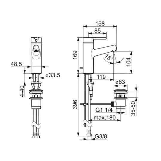 - 40 mm keramisch binnenwerk voor debiet en temperatuur instelling