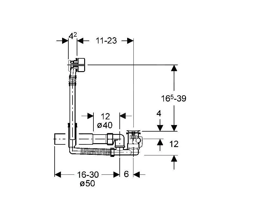 - draaibare afvoerbuis, DN 32/40 (40/50 mm), materiaal: PE/HDÂ kunststof