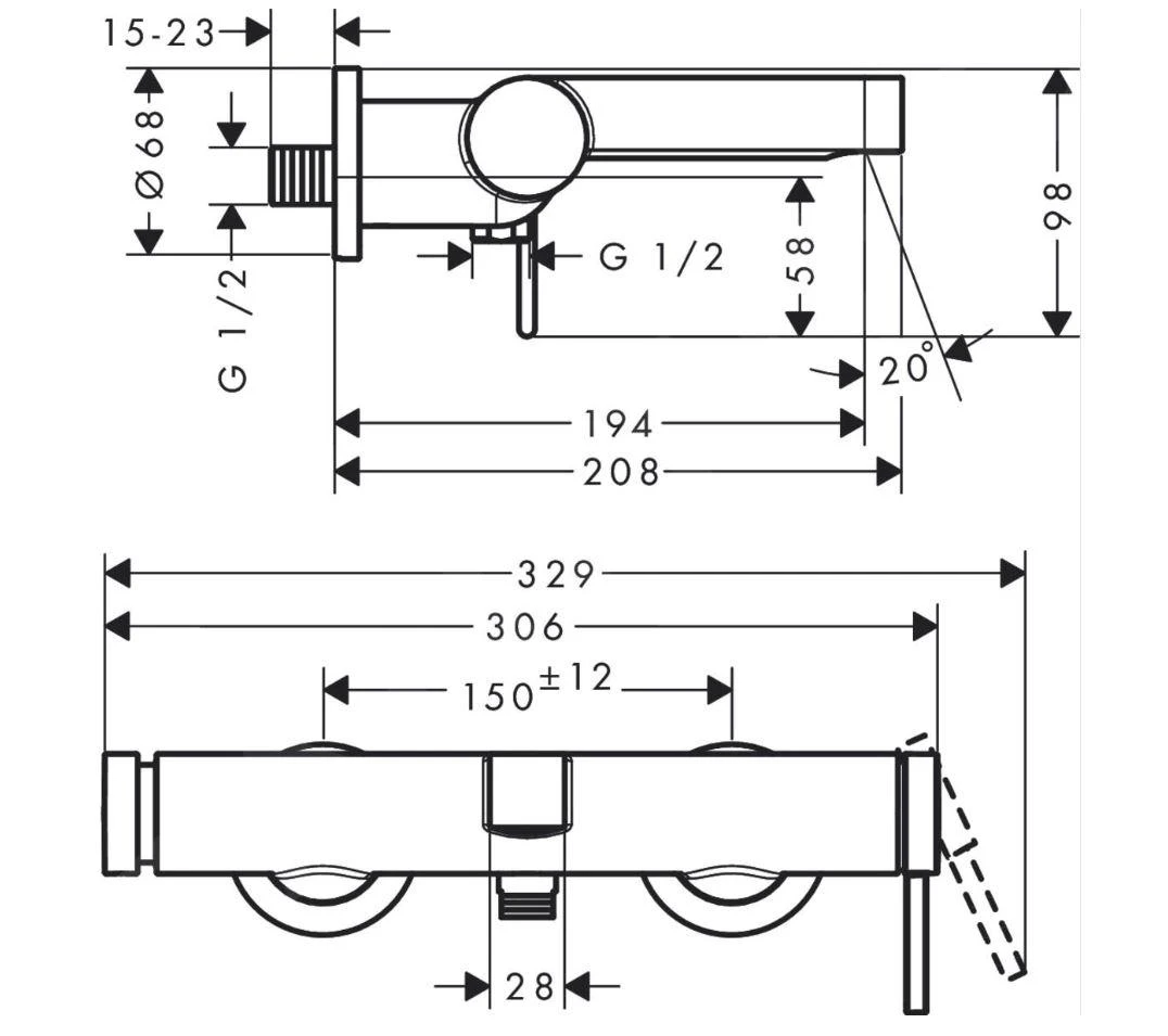 Finoris badkraan, zonder accessoires, wandmontage