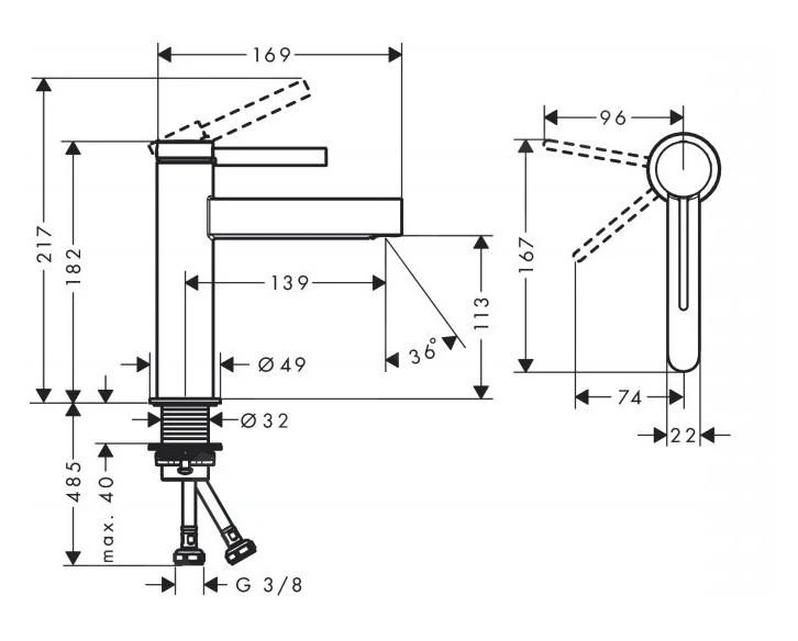 - max. doorstroming: 5 l/min (druk 3 bar)