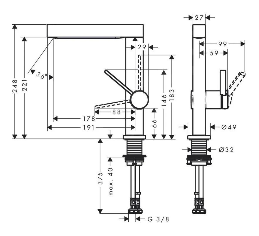 - lengte uitloop: 178 mm