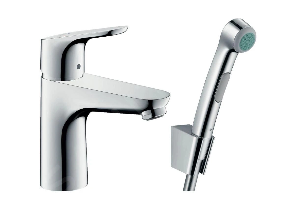 De set bevat bidetkraan met handdouche, aansluitslang, douchehouder, doucheslang, afvoergarnituur, bevestigingset, montage instructie