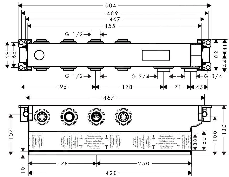 Een belangrijk en cruciaal onderdeel van elke RainSelect kraan is deze basisgarnituur voor twee apparaten. Het is namelijk compatibel met volgende RainSelect douchekranen: 15355000, 15355400, 15355600.