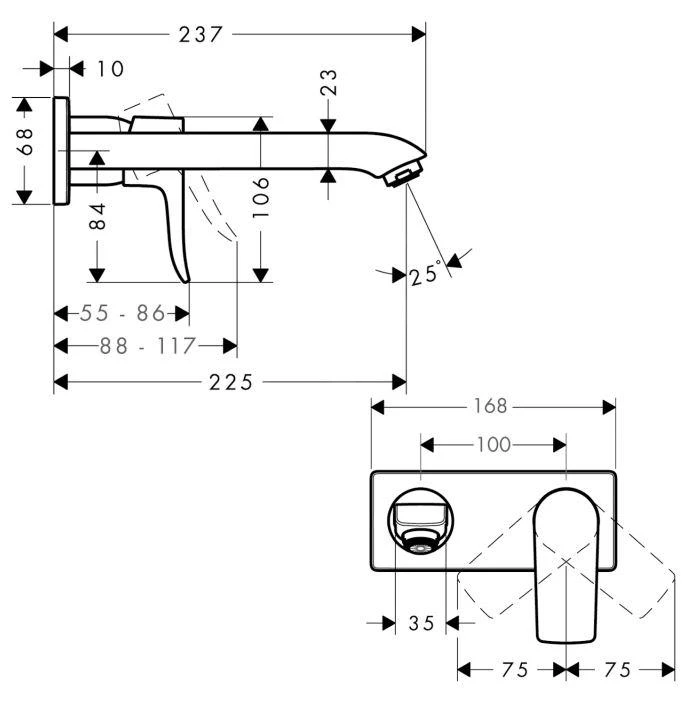Geniet van meer ruimte bij de wastafel – met een kraan voor wandmontage uit de Hansgrohe Metris lijn. De kraantechnologie blijft verborgen onder het stucwerk. De badkamer verkrijgt zo een exclusief designaspect en u krijgt meer ruimte in de omgeving van de wastafel. De lengte van de uitloop van deze versie is 225 mm. U kunt ook voor de variant met een 165 mm lange uitloop kiezen.