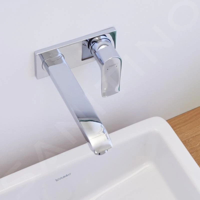 Geniet van meer ruimte bij de wastafel en van het gevoel van fijne pareltjes die over uw huid glijden met de Hansgrohe Metris 1-greeps inbouwkraan met een uitloop van 225 mm voor wandmontage!