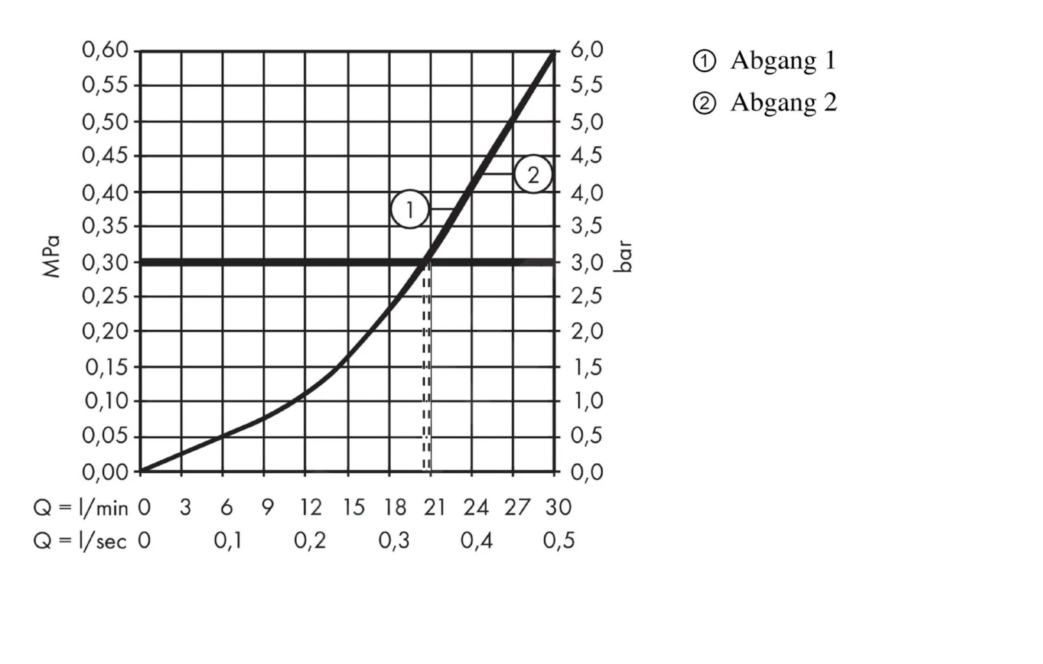 - doorstroming via toevoer naar de handdouche (bij 0,3 MPa): 20 l/min