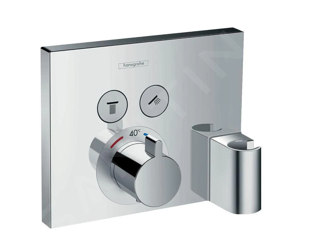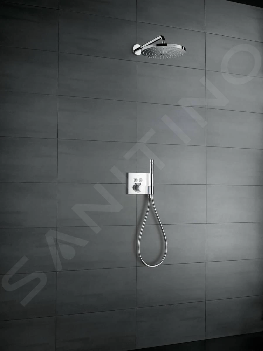 Moderne lijnen en praktische functionaliteiten maken van de Hansgrohe Shower Select inbouw thermostaatkraan een echte schat. De tijdloze combinatie van het vierkante rozet en de ronde bedieningselementen zorgt voor een prachtige uitstraling. De afdekset is bovenop uitgerust met een praktische geïntegreerde handdouchehouder. Zo is de handdouche altijd binnen een handbereik. De inbouwinstallatie bespaart niet alleen de schaarse ruimte in de douche, maar minimaliseert ook het risico op verwondingen.