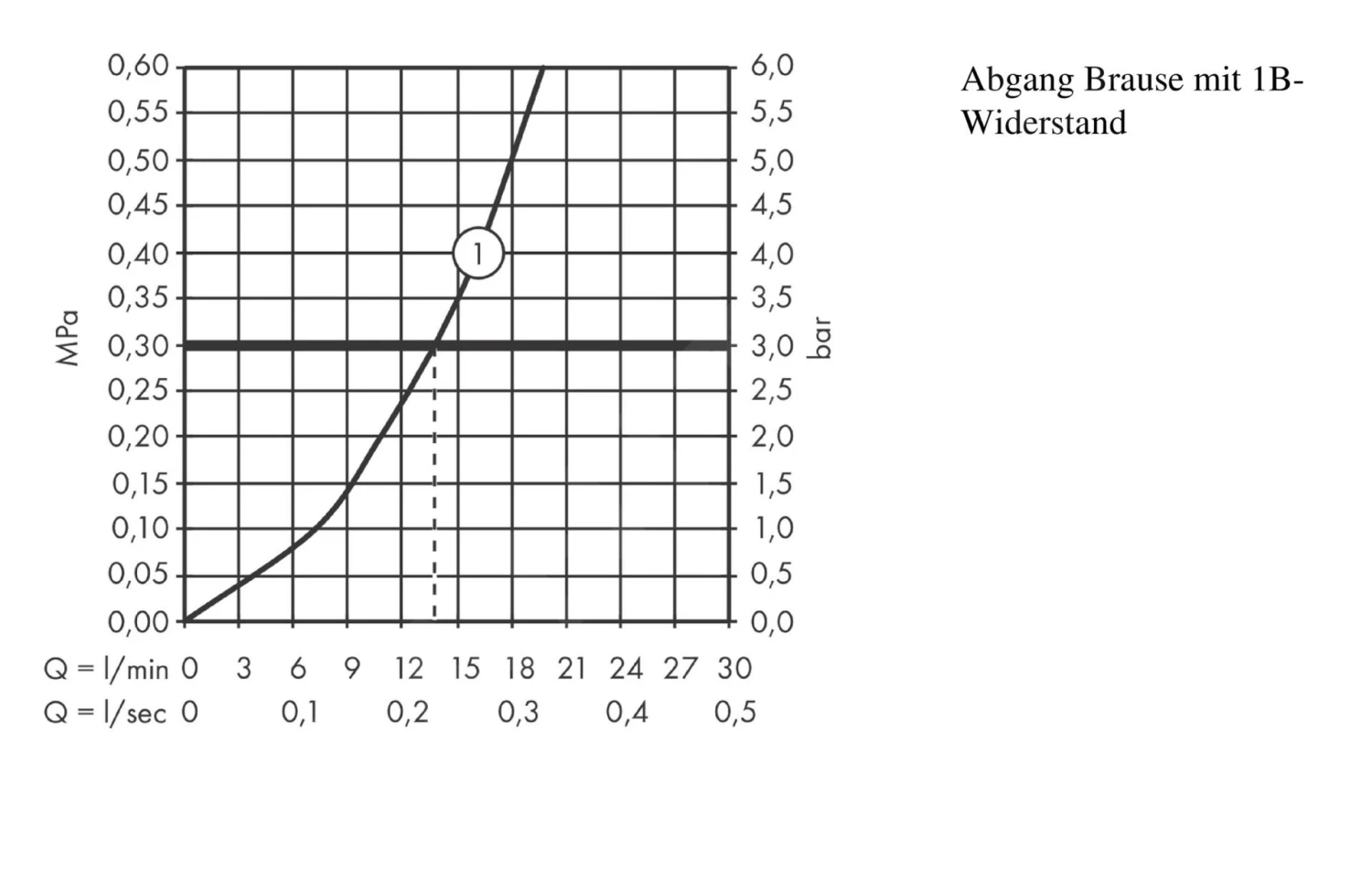 - doorstroming via toevoer naar de handdouche (bij 0,3 MPa): 14 l/min