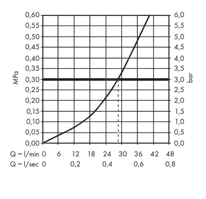- doorstroming bij 0,3 MPa: 29,3 l/min