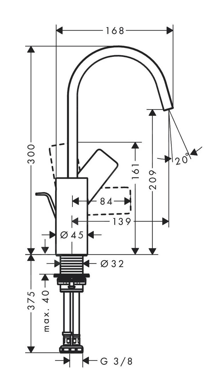 Vivenis 210 staande wastafelkraan, met draaibare uitloop