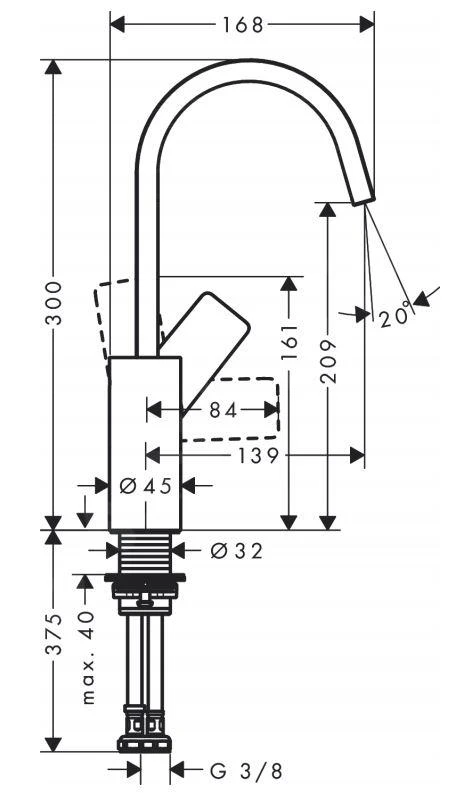 Vivenis 210 staande wastafelkraan, met draaibare uitloop