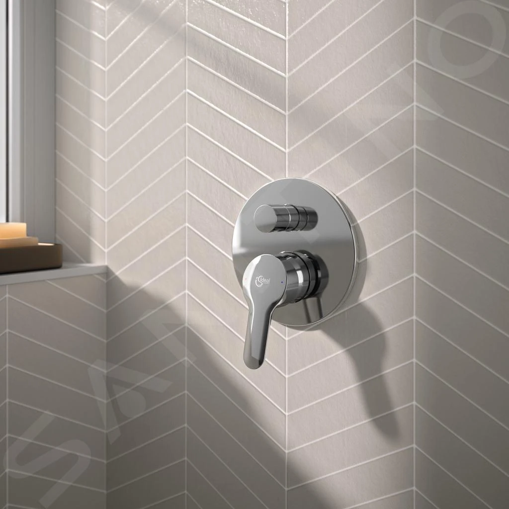 - warm/koud-aanduiding op de hendel, verchroomde afdekking