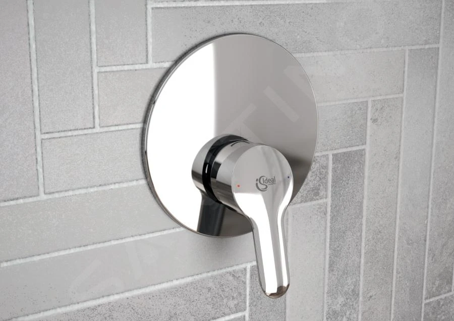 - warm/koud-aanduiding op de hendel, verchroomde afdekking