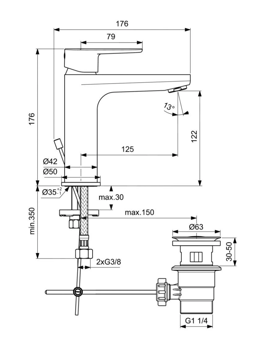 - kraan met mousseur en doorstroombegrenzer 5 l/min